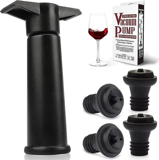 Набір для зберігання відкритого вина у пляшці, Вакуумна помпа для вина з 4 пробками