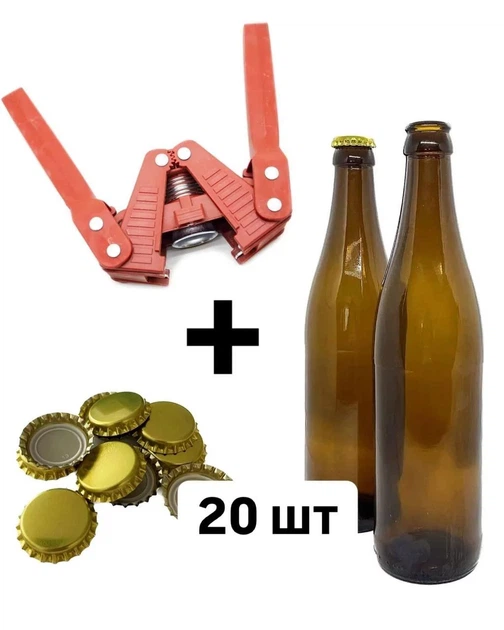 Набір для закупорки пива: укупорщик, золоті кроненкорки (20 шт) та пивні пляшки 500 мл (20 шт)