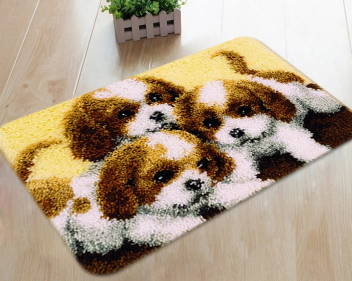 Набір для килимової вишивки килимок цуценята (основа-канва, нитки, гачок для килимової вишивки) (4502)
