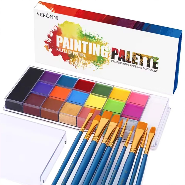 Фарба боді арт для обличчя Athena 20 кольорів з пензликами 10 шт.