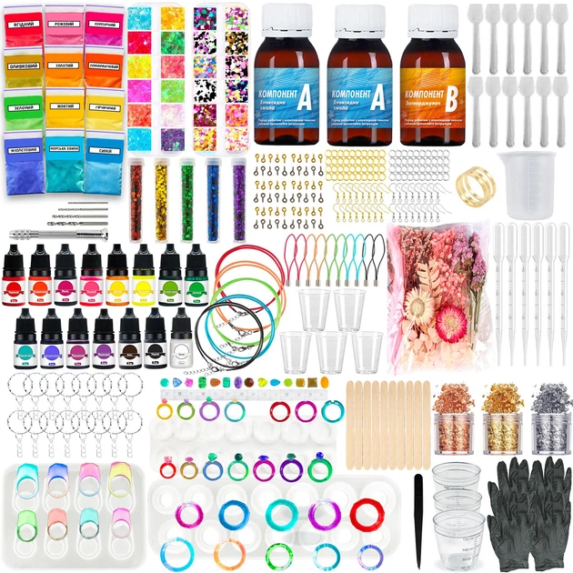 Великий набір з епоксидною смолою для виготовлення прикрас створення аксесуарів брелків каблучок кілець перснів сережок і бі