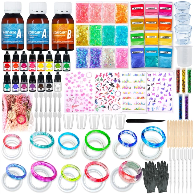 Набір з епоксидною смолою для виготовлення прикрас створення аксесуарів, браслетів і біжутерії власноруч з епоксидної смоли