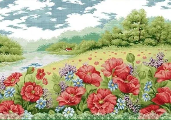 Набір для вишивання за нанесеною на канву схемою "Poppy garden". AIDA 14CT printed 72*52 см