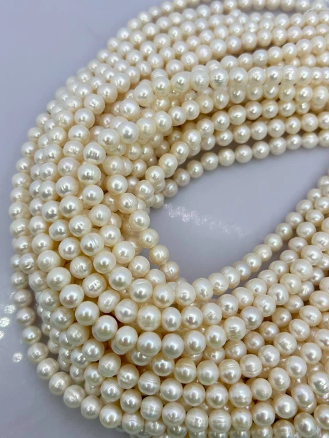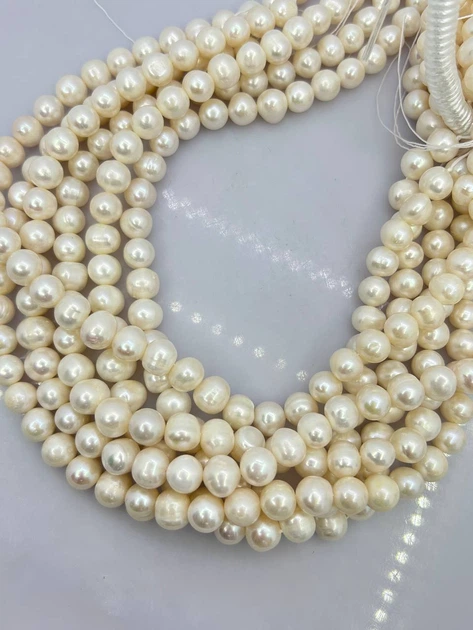Перли на нитці без замка 7-8 мм 40 см Білий 11678
