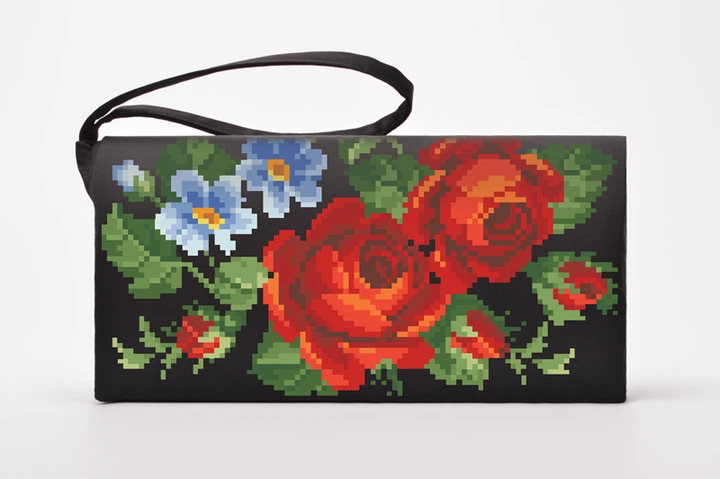 Набір для вишивки нитками Барвиста Вишиванка заготовки пошитого клатча Троянди і фіалки (КЛ022дЧ1301i)