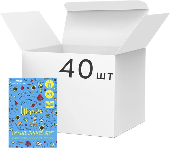 Набір кольорового паперу Maxi А4 16 аркушів 8 кольорів 70 г/м x 40 упаковок (MX21103)