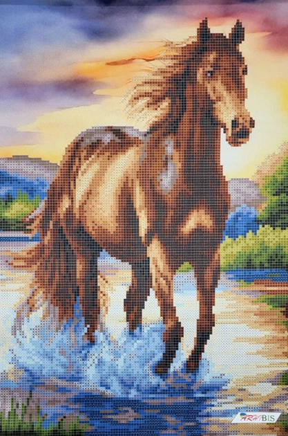 Набір для вишивки бісером картини з конем ARHIBIS Гнідий, 24,5*36,5 см (ЗПТ-037)