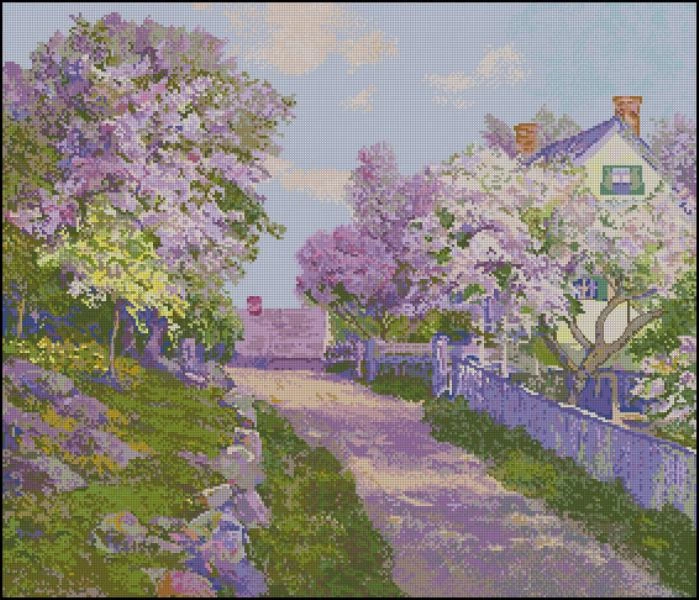Набір для вишивання хрестом лічильний хрест 43*37 см Бузкова вуличка