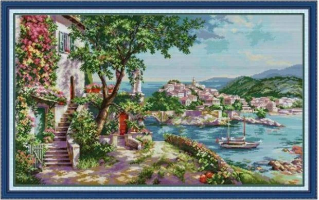 Набір для вишивання за нанесеною на канву схемою The Mediterranean scenery. AIDA 14CT printed, 71*46 см
