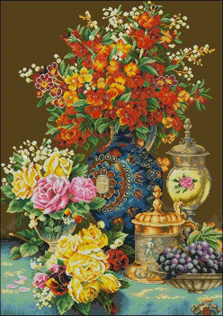 Набір для вишивання хрестиком Розмір: 33*46 см Натюрморт з квітами у давнину