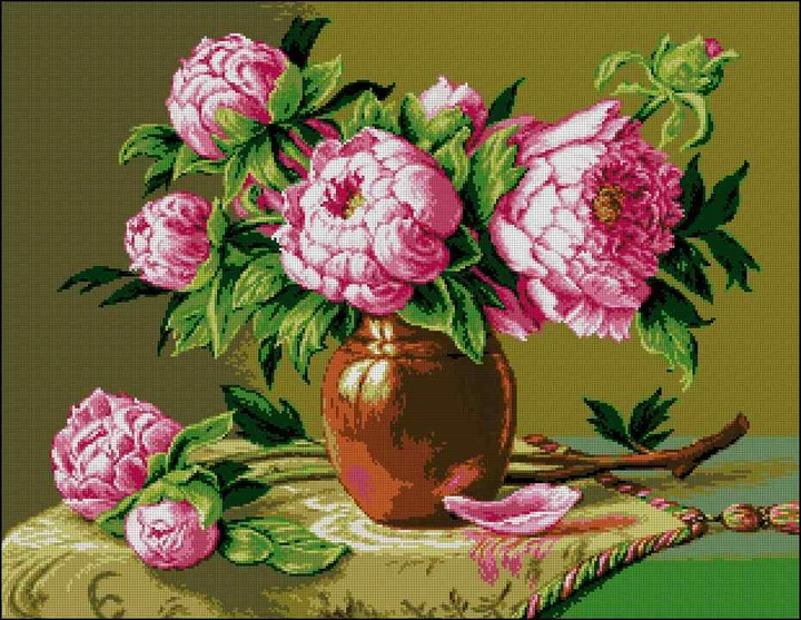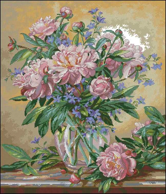 Набір для вишивання хрестиком Розмір: 34*40 см Півонії та дзвіночки