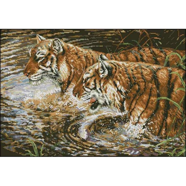 Набір для вишивання хрестиком Розмір: 42*29 см Купання тигрів