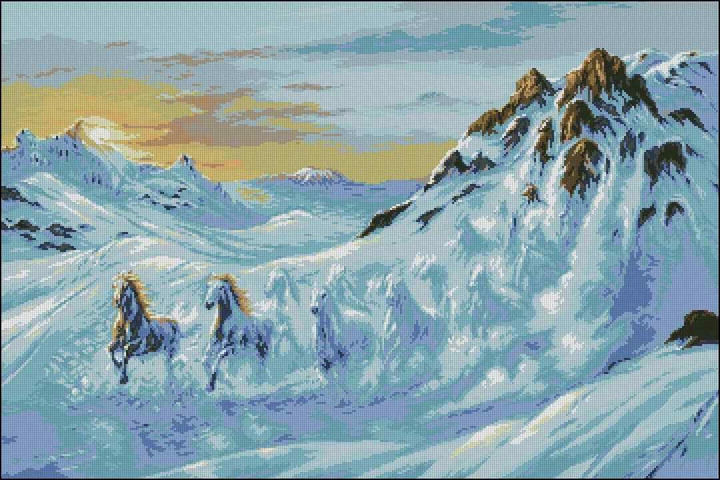 Набір для вишивання хрестиком Розмір: 57*38 см Коні в снігу