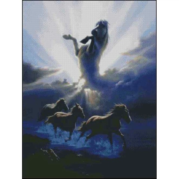 Набір для вишивання хрестиком Розмір: 48*37 см Кінь у заході сонця