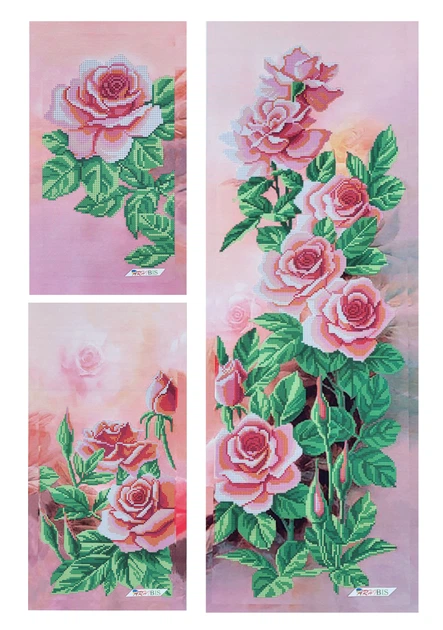 Набір для вишивки бісером модульної картини, триптиху з квітами ARHIBIS Трояндовий сад, 65х75см (СК-005)