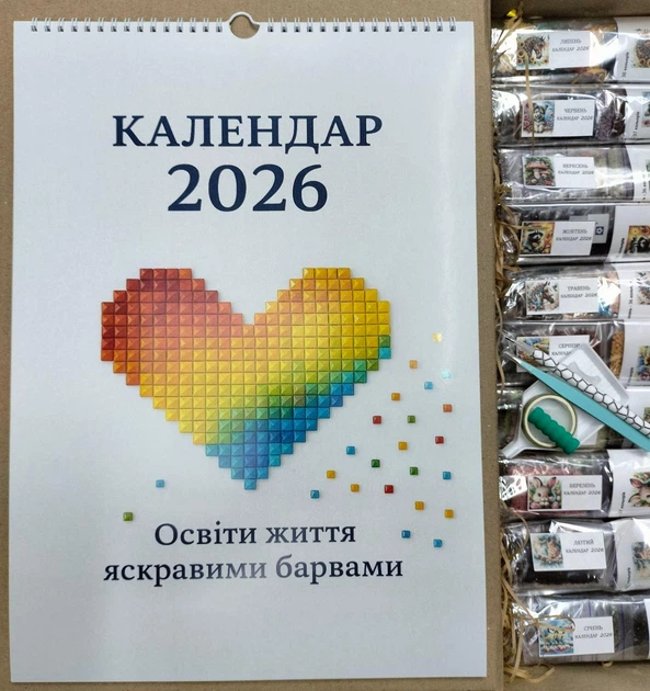 Календар настінний на пружині перекидний алмазної мозаїки 2026