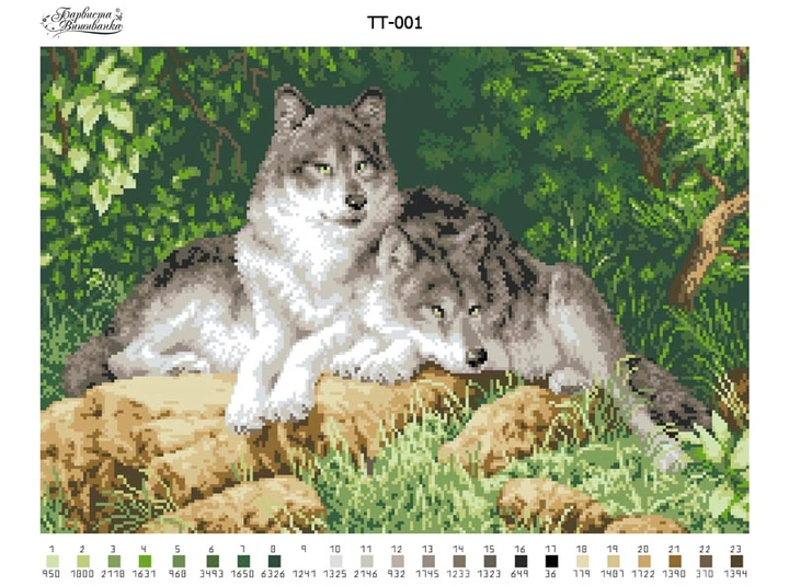 Набір для вишивки бісером Барвиста Вишиванка Пара вовків 52х36 (ТТ001пн5236k)