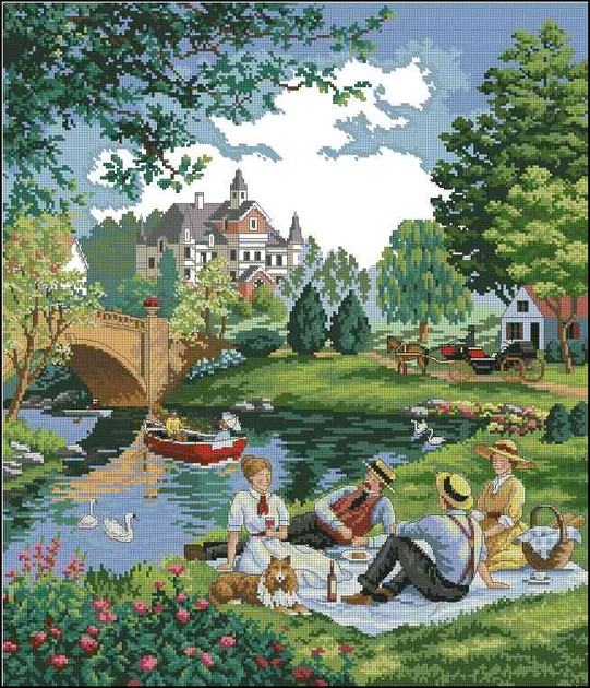 Набір для вишивання хрестиком Розмір: 35*40 см Пікнік на лужку