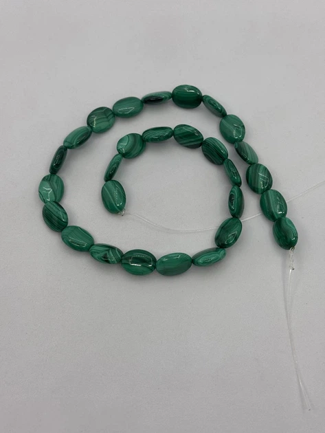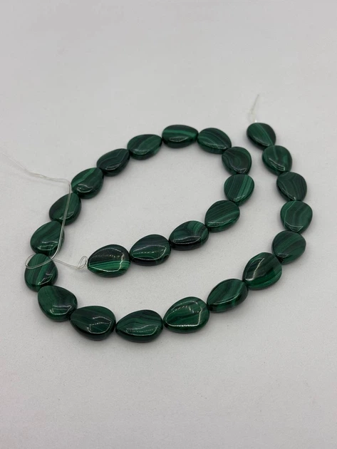 Малахіт на нитці без застібки 10*14 мм 40 см Зелений (12658)