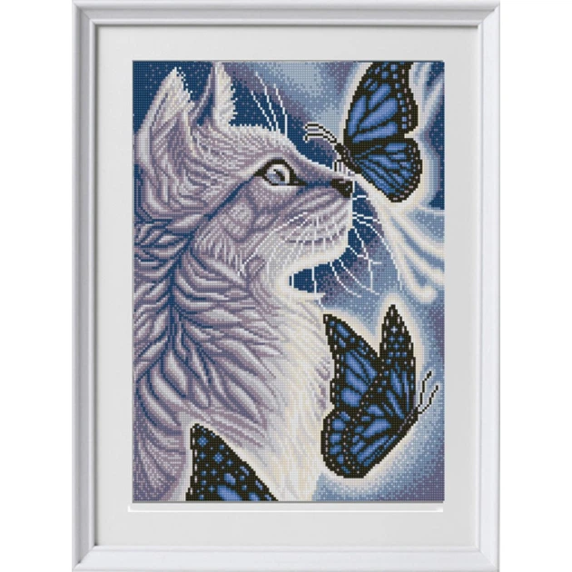 Набір для вишивання бісером картини ARHIBIS Білий кіт, 29*39 см (НИК-1303)