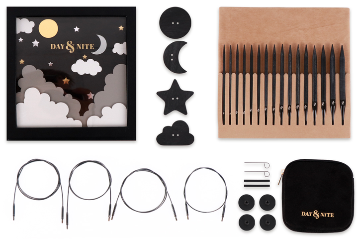 Набір дерев'яних, інноваційних, знімних кругових спиць DAY&NITE, KnitPro для в'язання у футлярі,подарунковий набір в'язальни