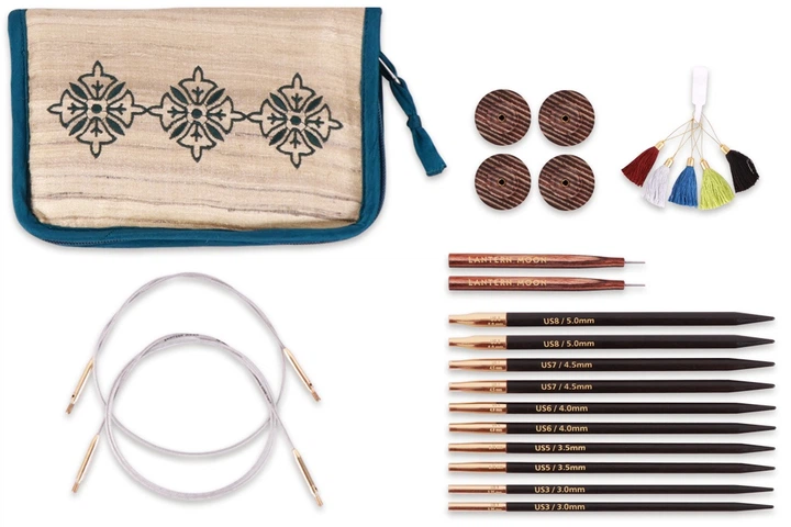 Набір знімних кругових спиць із шовковим покриттям 5пар, 3-5 mm Lantern Moon "Charm" Шарм, KnitPro для в'язання у футлярі,по