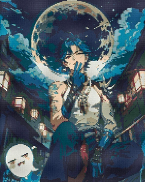 Алмазна мозаїка аніме Геншин імпакт Сяо на тлі місяця 40х50 см Орігамі (OD30150)