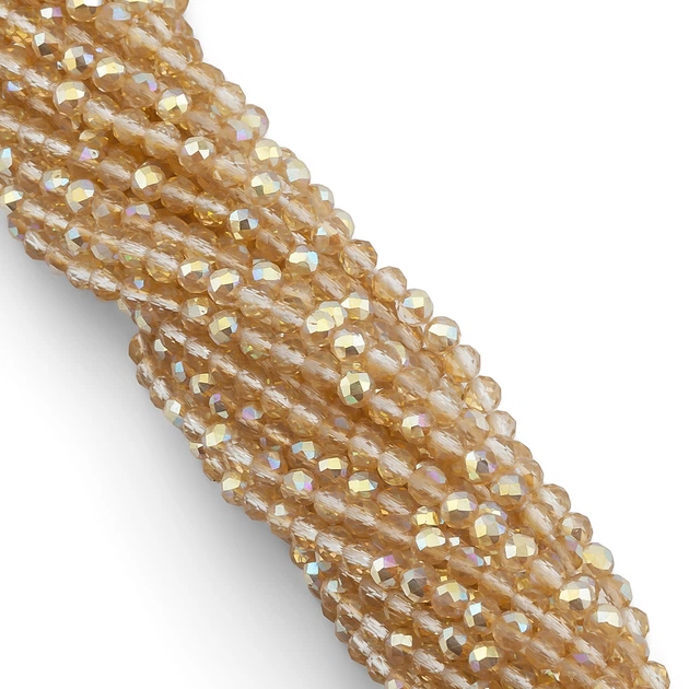 Намистини з круглим огранюванням на нитці 37 см зі шпінелі 2 мм 200 шт Бежевий АВ (БШ0002к53)