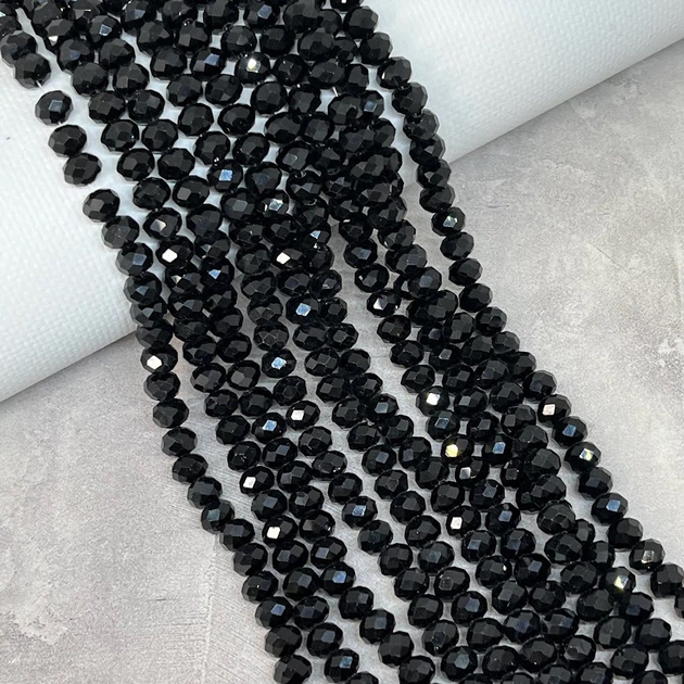 Намистини Хрусталь - Rondelle, 8 мм, колір -чорний (Black), 65-68 шт, 1 нитка