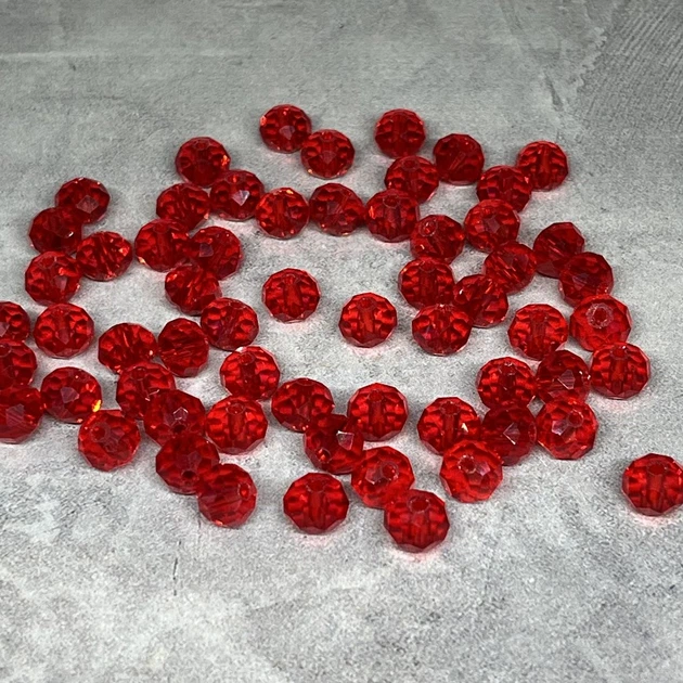 Намистини Рондель (Rondelle- прозорий), 8*6 мм, колір -червоний, арт 018247, 1 нитка- 65-68 шт