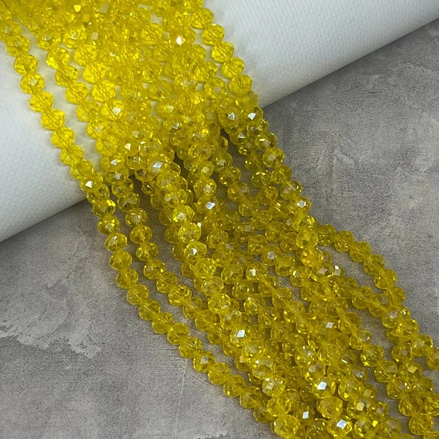Намистини Хрусталь - Rondelle, 8 мм, колір Light Citrine - жовтий АВ, 65-68 шт на нитці, 1 нитка