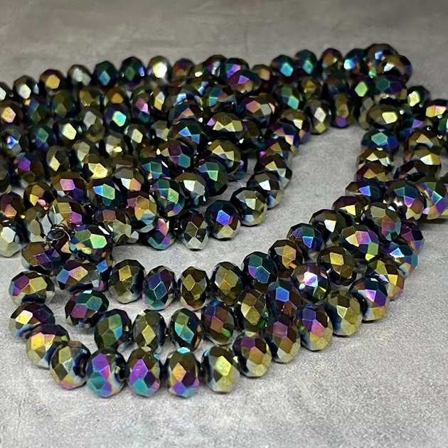 Намистини Рондель (Rondelle- гальваника, не прозорий), 8*6 мм, колір -різнокольоривий, 65-69 шт, 1 нитка