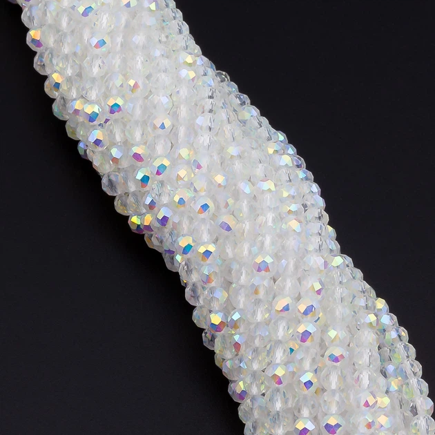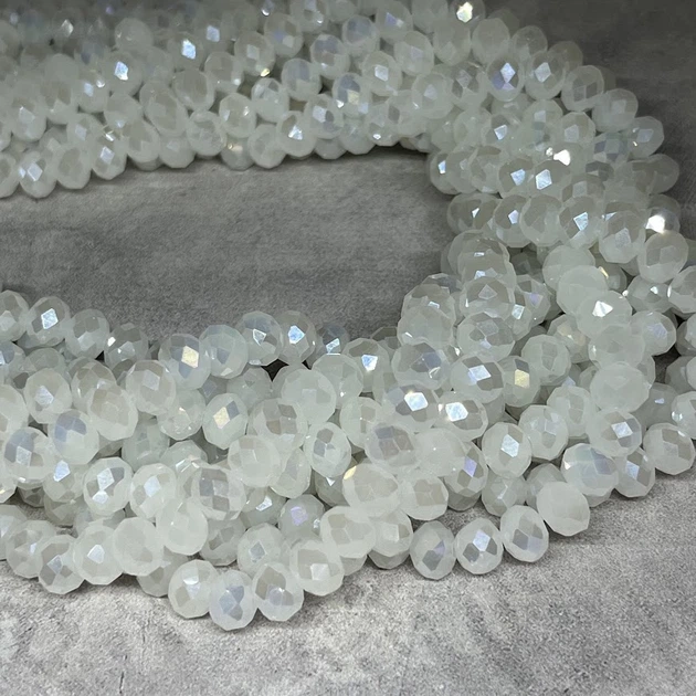 Намистини Рондель (Rondelle- Непрозорий), 8*6 мм, колір -білий АВ, арт 018252, 1 нитка- 65-68 шт