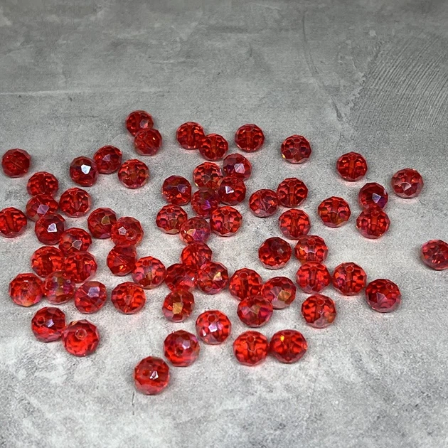 Намистини Рондель (Rondelle- прозорий), 8*6 мм, колір -червоний АВ, арт 018250, 1 нитка- 65-68 шт
