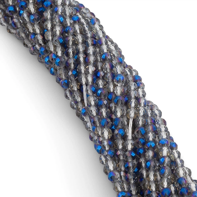 Намистини з круглим огранюванням на нитці 37 см зі шпінелі 2 мм 200 шт Сірий з синім райдужний (БШ0002к64)