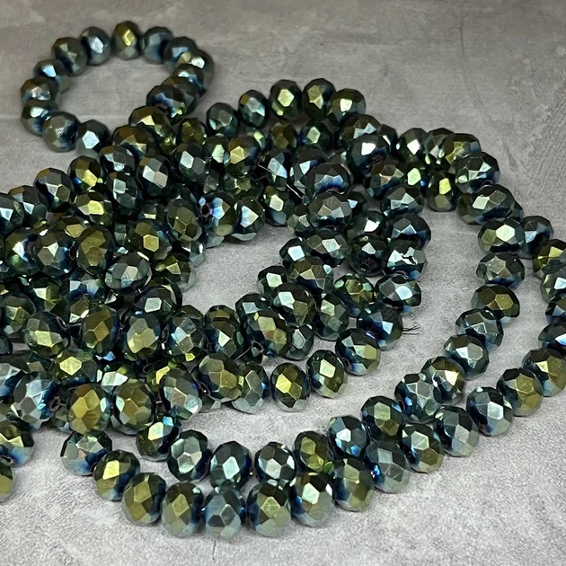 Намистини Рондель (Rondelle- гальваника, не прозорий), 8*6 мм, колір -зелений АВ, 65-69 шт, 1 нитка
