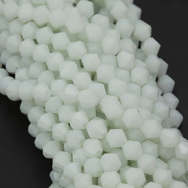 Намистини з кришталю у формі біконуса на нитці з огранюванням 6х6.2 мм +-46 шт Білий (БИ0006к02)