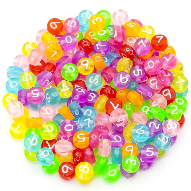 Намистини пластикові у формі таблетки з білими цифрами 7х4 мм 25 г 190 шт Різнобарвний (БП0704ц52)