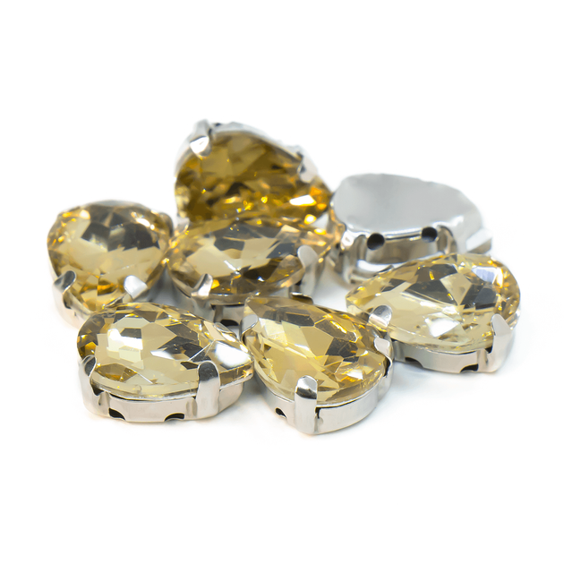 Стрази в оправі пришивні Крапля 10х14 мм 10 шт. Бежевий (СЦ1014я03)