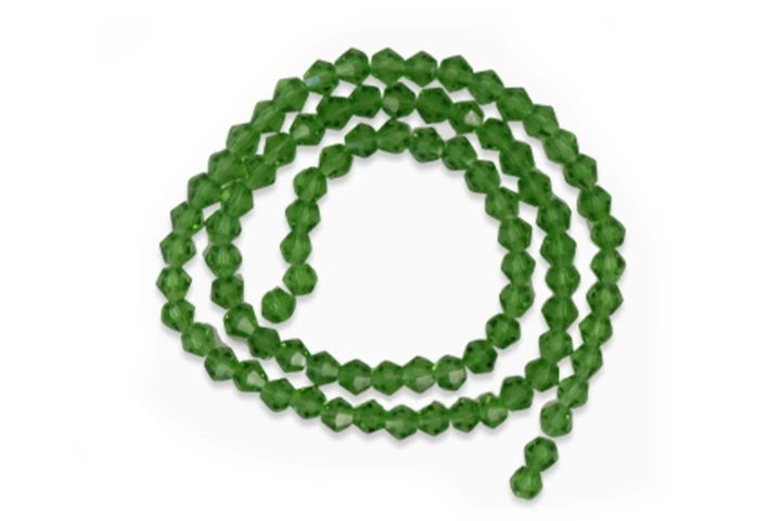 Намистини кришталеві Біконус, 4мм, нитка 90 шт, прозоро-зелений - камінчики для прикрас, рукоділля, творчості, декору