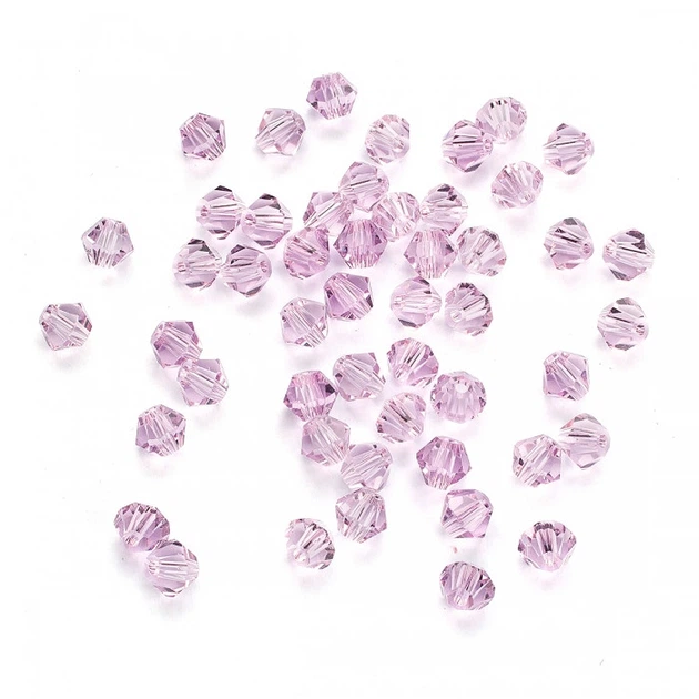 Намистини Австрійський Кришталь, Огранка 5301, Імітація, Скло, Біконус, Перлинно-рожевий, 3.5х4мм, 50 шт