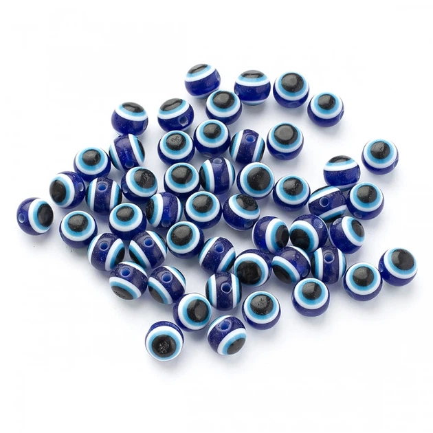 Намистини Смола, Око, Круглі, Королівський Синій, 8х7мм, Отвір 1.5мм, 50 шт