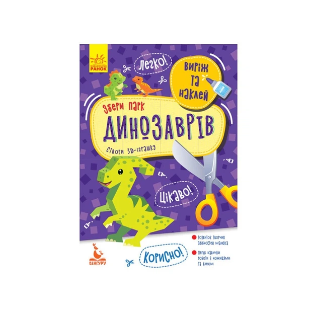 Виріж і наклей Збери парк динозаврів КЕНГУРУ 887008, 8 динозаврів