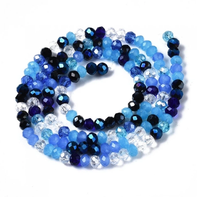 Намистини Гальваніка Скло АВ-Цвіт, Грановані, Рондель, Синій, 4.5х3.5мм, Отвір 1мм, близько 138шт/46см/нитка