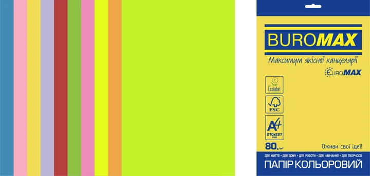 Набір кольорового паперу NEON+INTENSIVE, EUROMAX, 10 кол., 20 к.с., А4, 80 г/м