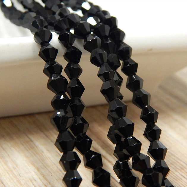 Намистини скляні Біконус 6х5,7 мм чорний нить ~47 шт