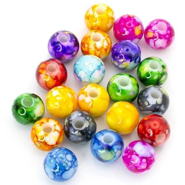 Намистини пластикові з розводами 10х9. 5 мм 3 мм +-30 шт. Мікс кольорів (БП0010к52)
