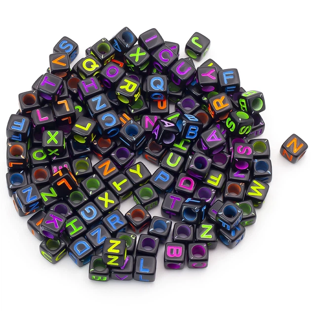 Намистини пластикові з різнокольоровими літерами англійського алфавіту квадратної форми 6х6 мм 25 г +-140 шт Чорний (БП0606д