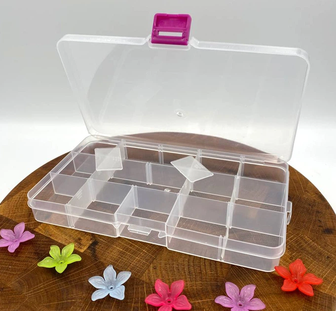 Органайзер для бісеру, бусин, дрібниць / 17.3*9.8*2.3cm / 15 знімних комірок / прозрачний