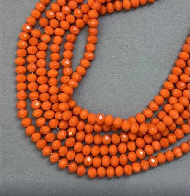 Намистини Чеський Кришталь матові колір оранж червоний апельсин гранований рондель, діаметр 6мм нитка, довжина 45см, ida2002